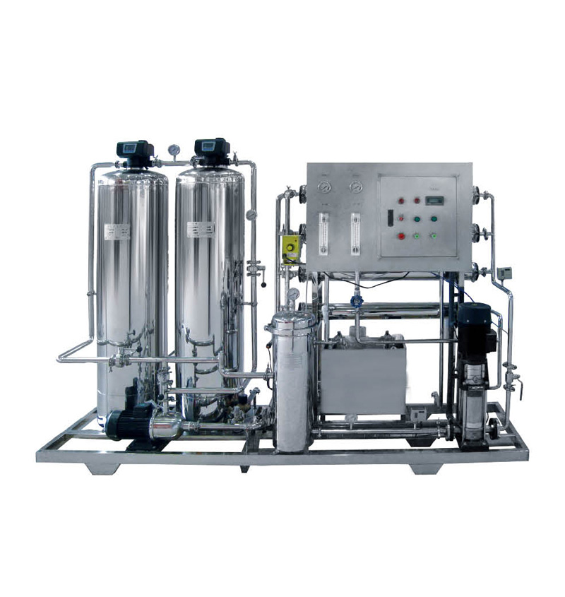 آلة المياه النقية: تستخدم بشكل أساسي تقنية غشاء التناضح العكسي. يتمثل مبدأ عمل جهاز تنقية المياه في ممارسة ضغط معين على الماء بحيث يمكن لجزيئات الماء والعناصر المعدنية الأيونية أن تمر عبر غشاء التناضح العكسي ، بينما الغالبية العظمى من الأملاح غير العضوية (بما في ذلك المعادن الثقيلة) والمواد العضوية والبكتيريا والفيروسات ، وما إلى ذلك ، الذائب في الماء لا يمكن أن يمر عبر غشاء التناضح العكسي ، بحيث يمكن فصل المياه النقية المخترقة والماء المركز المنفصل بشكل صارم.
